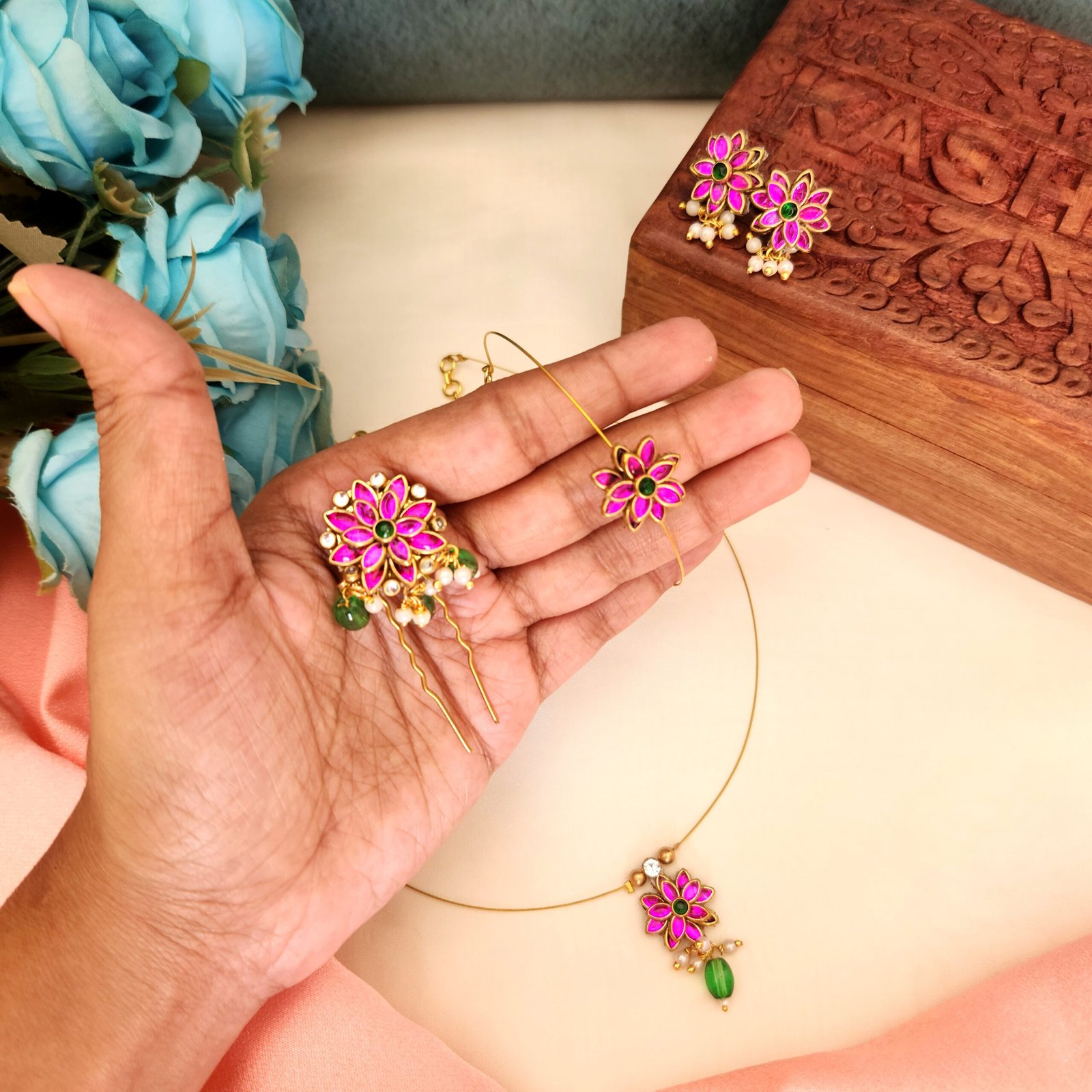 Handmade kundan floral combo