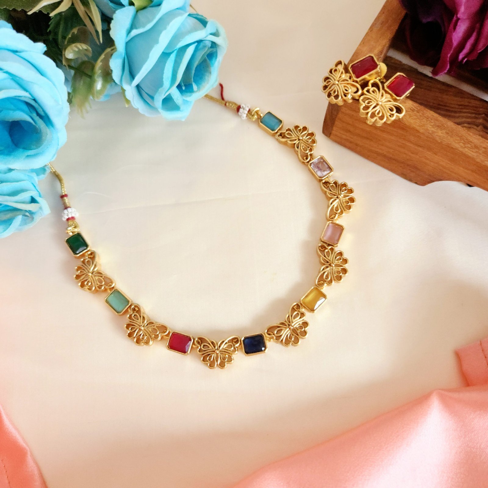 Navarathna butterfly necklace
