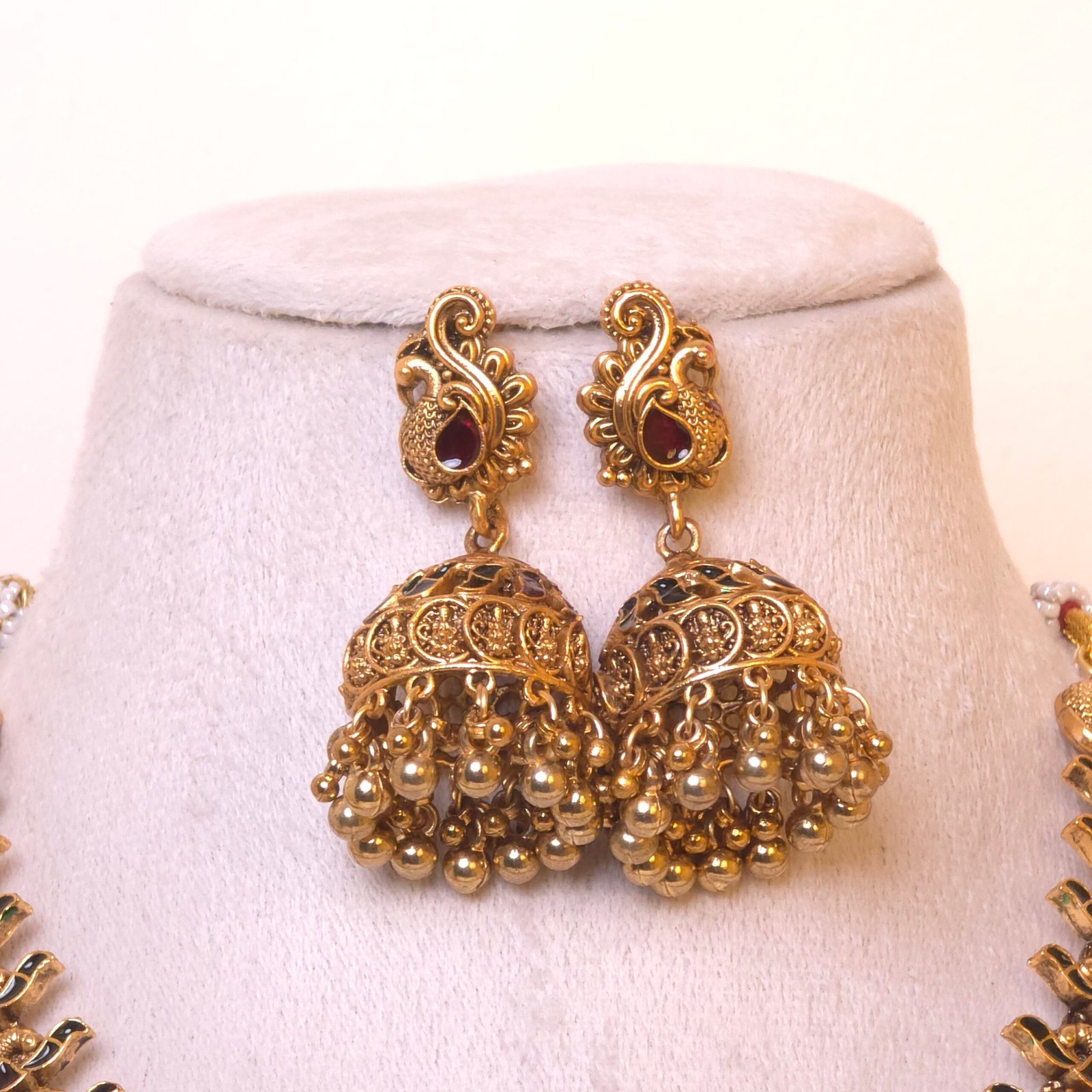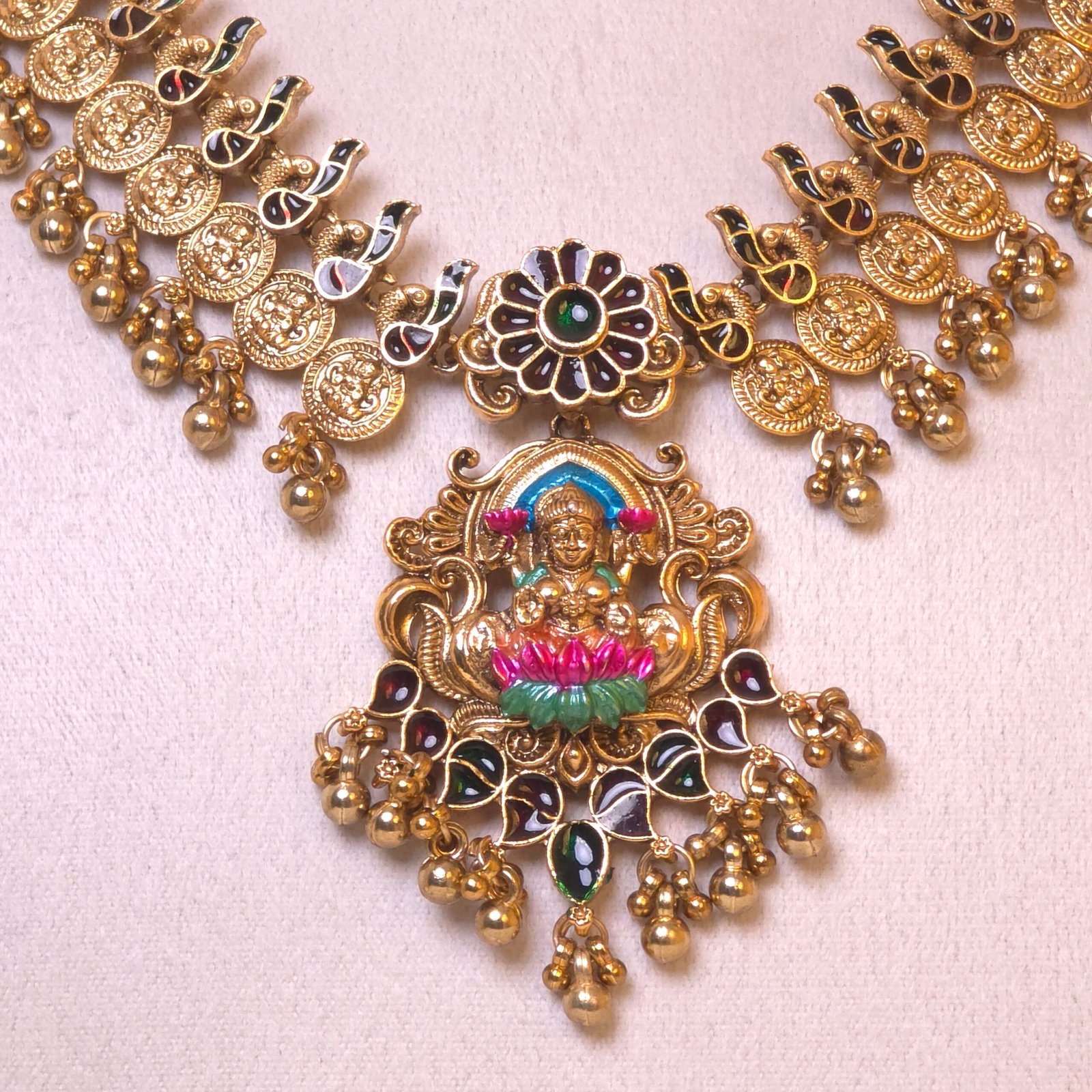 Meenakari Hand Painted Black Enamelled Peacock Coin Necklace