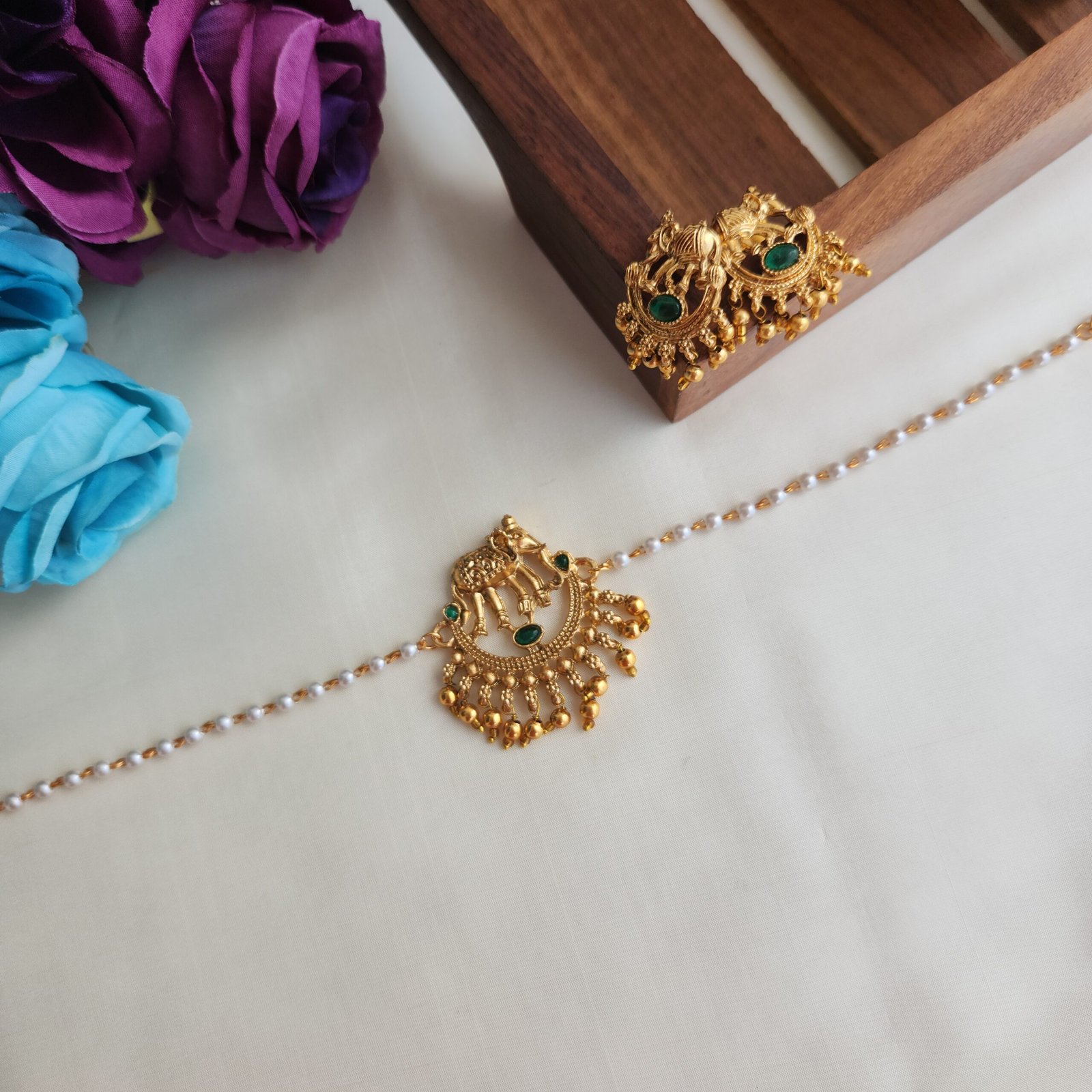 Elephant pallaku pearl choker necklace